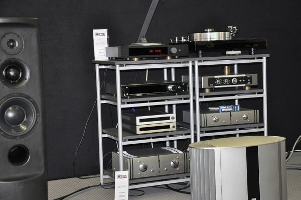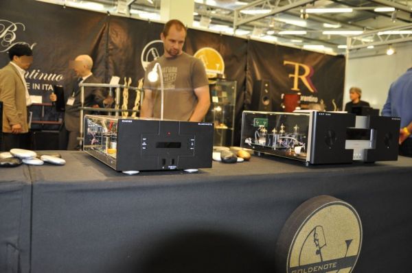 Verschiedene italienische Hersteller von hochwertigen HiFi-Komponenten stellten gemeinsam aus: Goldenote, Bassocontinuo, Pear Evolution, Norma, Atelier du Triode, Mastersound und Kiom.