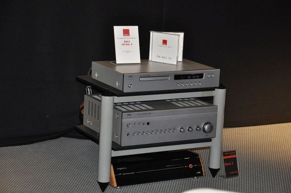 Dali führte seinen neuen Lautsprecher - den Fazon F5 vor. Verstärker- und CD-Player seitig waren Geräte von NAD angeschlossen. Für den guten Strom war ein Netzfilter von HMS umsorgt. Klanglich war es zwar unaufdringlich, jedoch leider etwas künstlich.