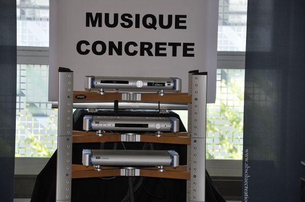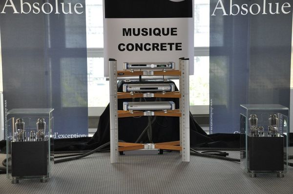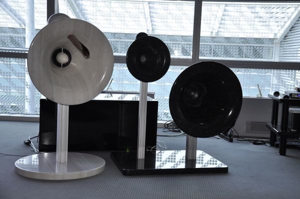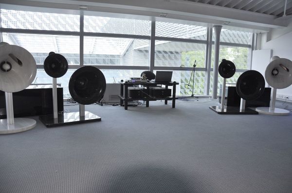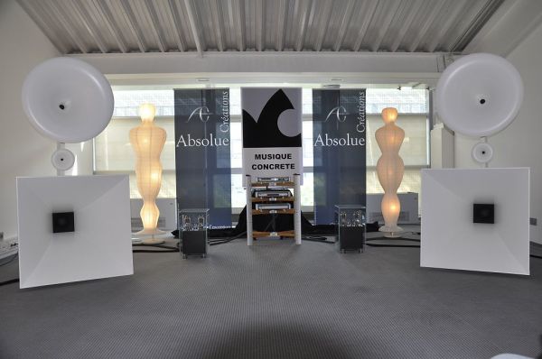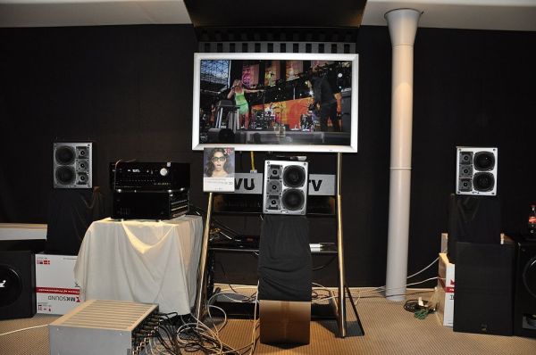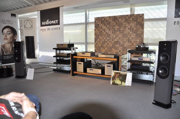 Die Hornlautsprecher La Grande Castine von Musique Concrete wurden mit zwei zusätzlichen riesigen Bass-Dipolen an Elektronik von MSB vorgeführt. Bei Trompetenmusik kam das sehr gut, wenn auch mit den altbekannten Hornverfärbungen. Der Bass war stets präsent, jedoch ohne zu dröhnen. Er hätte aber etwas lauter sein können.