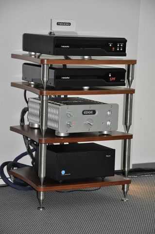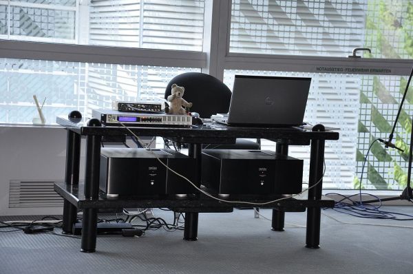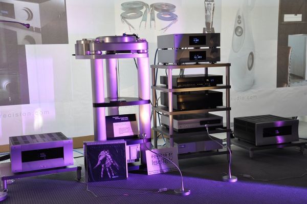 Die edlen Lautsprecher von Wilson Audio wurden an Elektronik von Spectral und Meitner vorgeführt. Als Netzfilter kam eine Shunyata Hydra zum Einsatz, rackseitig wurde auf die Racks von Finite Elemente gesetzt. Das war eine klanglich überzeugende Vorstellung.