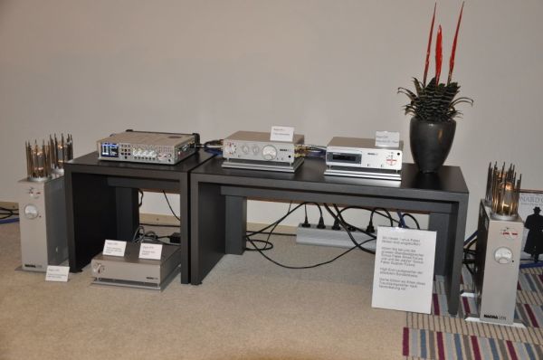 Mit grossen Erwartungen ging ich in den Vorführraum von Art & unerhört, die Elektronik von Nagra hat ein spezielles und sehr techisches Design, klingt aber dennoch nicht kühl, sondern sehr musikalisch. D.h. Nagra könnte musikalisch klingen, jedenfalls habe ich das von der High End Swiss 2009 und einer privaten Vorführung bei einem Musikliebhaber in Erinnerung. Leider wars aber bei dieser Vorführung nicht so: Das ganze klang etwas flach und der Funke sprang einfach nicht über. Schade!