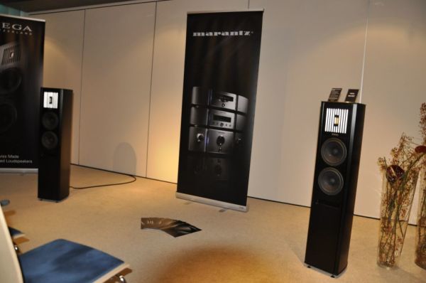 Piega führte mit Elektronik von Marantz vor. Nach wie vor spricht mich der Klang von Piega-Lautsprechern nicht an, das ganze klang kühl und teilweise scharf. Dennoch war es meines Erachtens klanglich die bisher beste Vorführung von Piega.