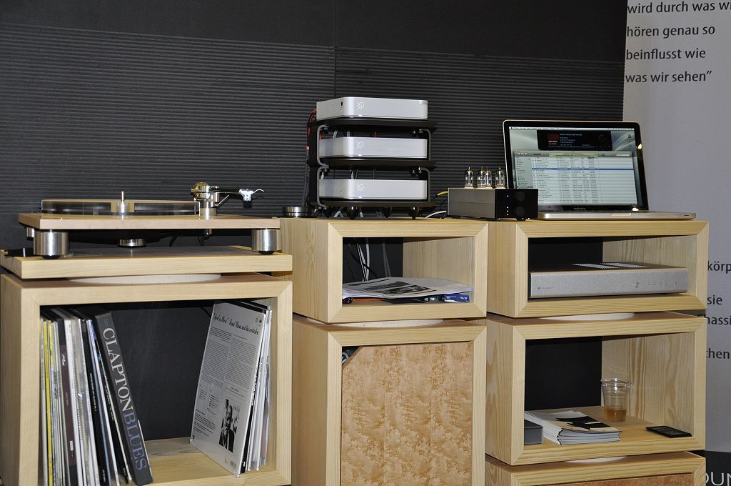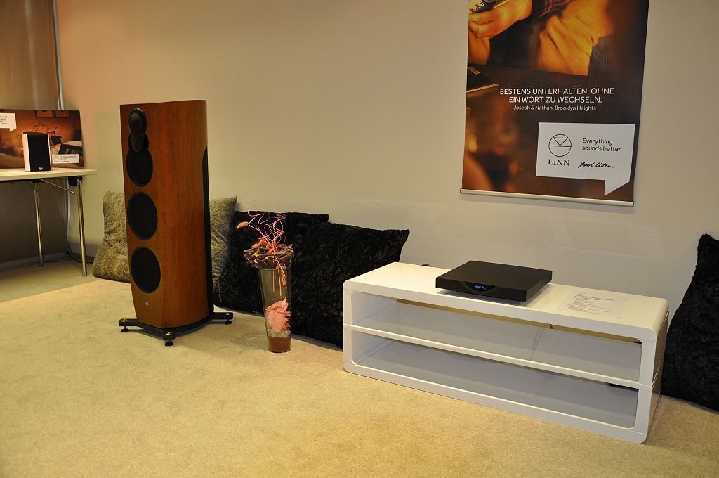 Bei Linn konnte man das Multi Source System Klimax DS erleben. Verstärkung und Lautsprecher stammten natürlich ebenfalls von Linn. Klanglich hat es mir nicht sonderlich gefallen: Wie so oft erlebt, löste sich auch hier das Klangbild zu wenig von den Lautsprechern ab.
