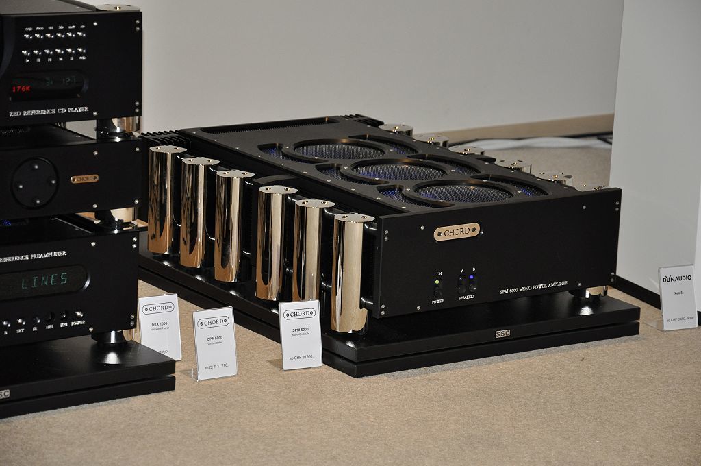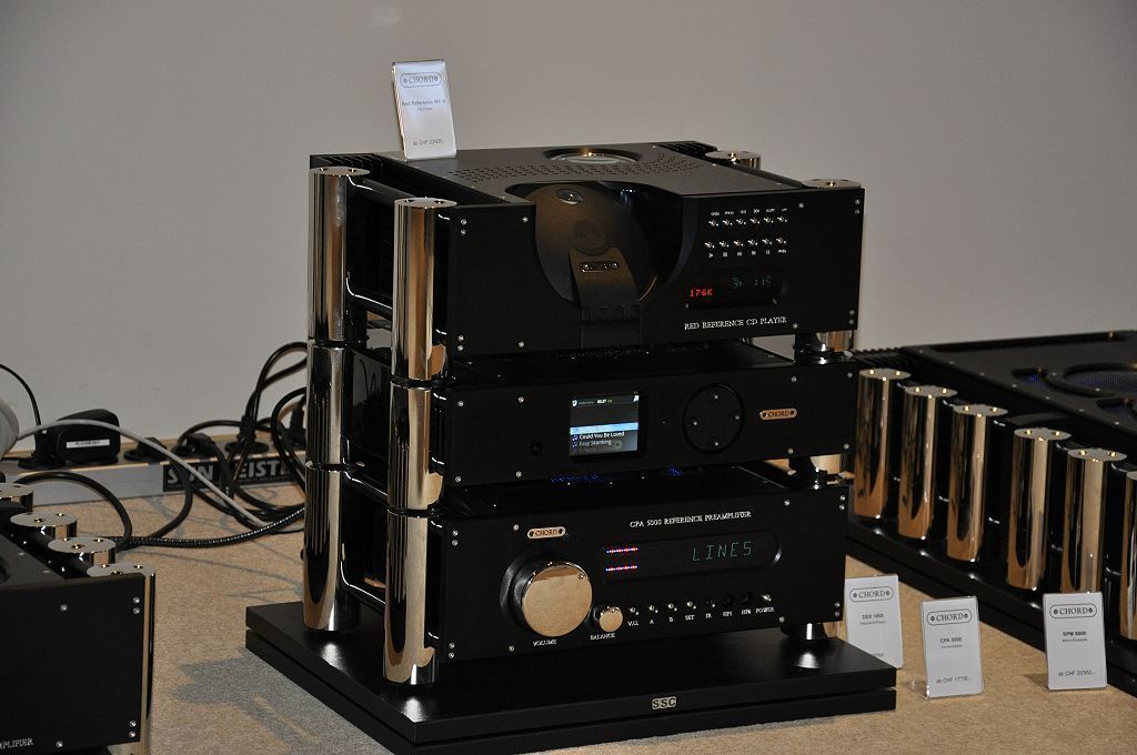 Zum Abschluss gab's zumindest optisch noch etwas Gewaltiges: Dynaudio führte seine Referenz-Lautsprecher - die Evidence Platinum - an Chord Elektronik vor. Dynaudio baut gute und überzeugende Lautsprecher. Die Vor- und Endverstärker-Kombination sowie der CD-Player von Chord sind optisch beeindruckend und klanglich indes keinesfalls schlecht: Den Klang empfand ich als detailreich und ausgewogen, aber dennoch auch irgendwie emotionslos.