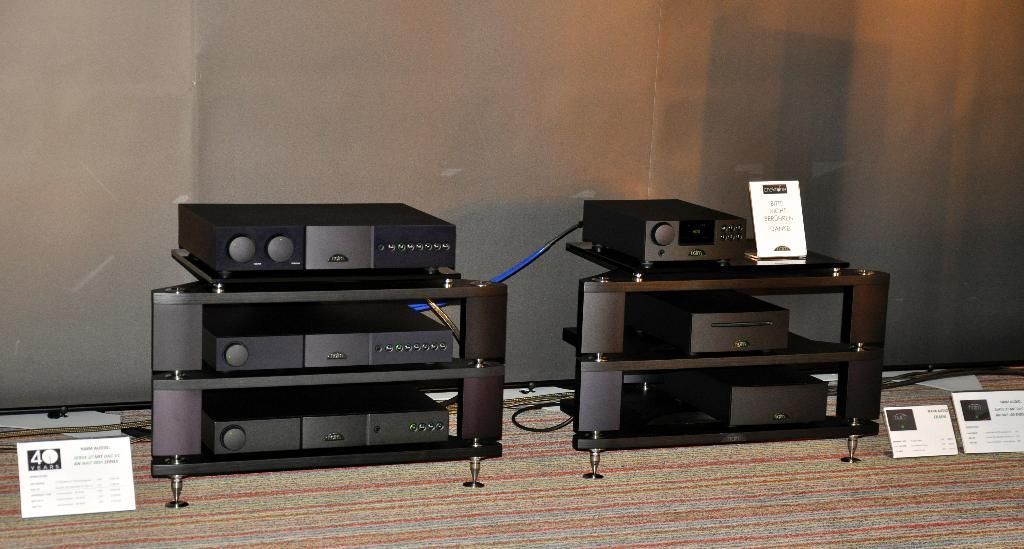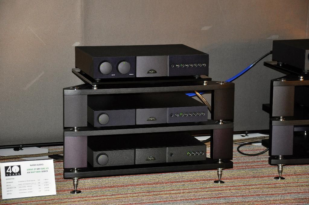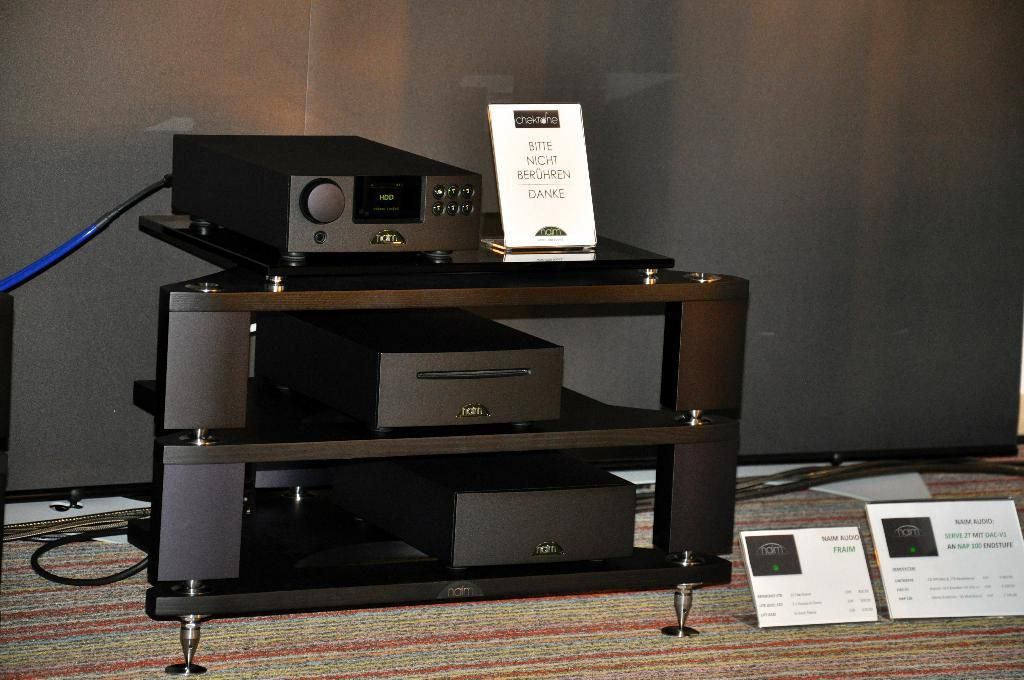 Naim feiert heuer sein 40jähriges Bestehen und da ich die letztjährige Naim-Vorführung der Chektone GmbH in guter Erinnerung hatte, ging ich mit grossen Erwartungen in den Raum. Leider war's bei den Erwartungen geblieben: Entweder gab's ein Problem mit den Lautsprechern oder die Quelle bzw. allenfalls das Quellenformat war die Ursache. Der Bass war wie abgeschnitten und auch im Hochton schien irgendwas zu fehlen. Schade, denn das Jubiläum von Naim hätte etwas besseres verdient.
