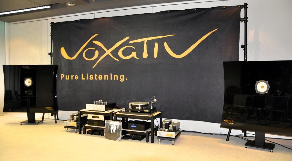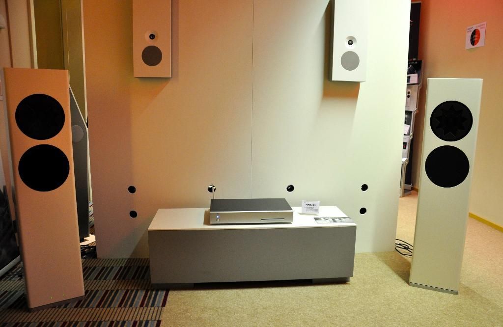 Eine der besten Vorführungen der High End Swiss 2013: Die Anlage von Voxativ wusste klanglich zu überzeugen. Die Breitband-Lautsprecher sind allerdings auch in der Gehäuseform sehr breit und dürften damit in Sachen Wohnraum-Integration nicht ganz unproblematisch sein.