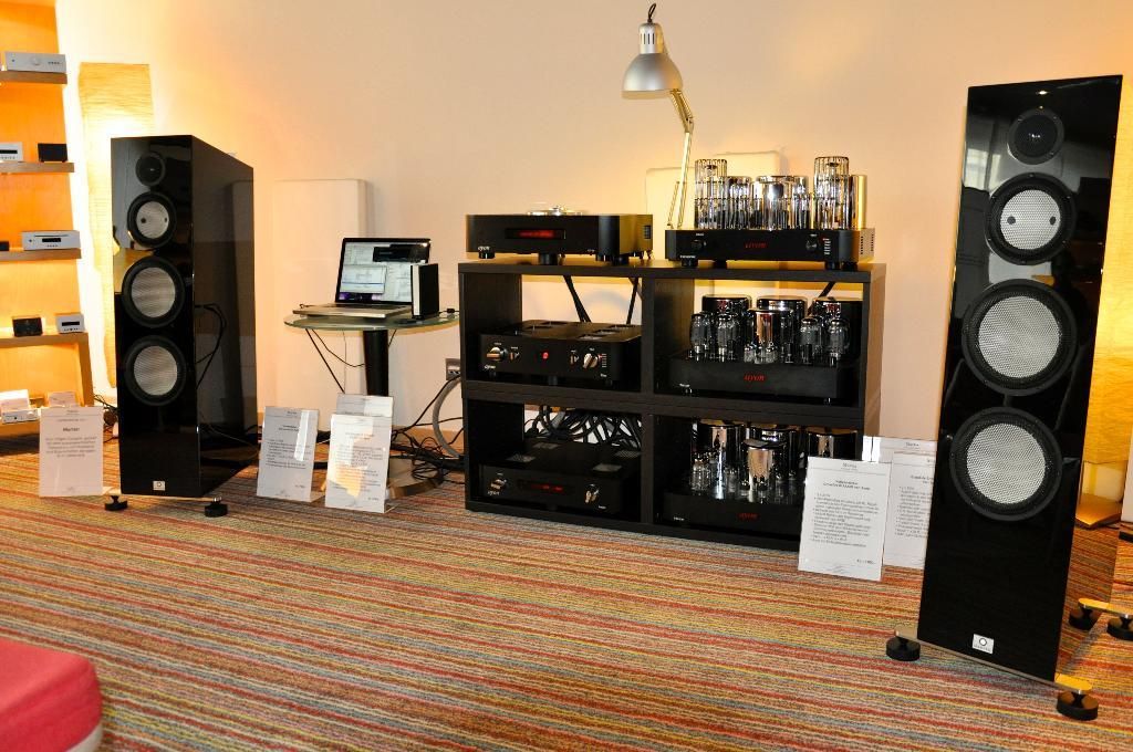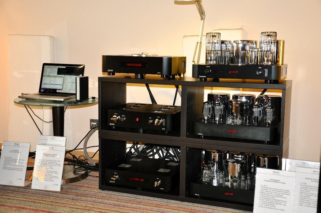 Danach folgte der Wechsel auf die Anlage mit Ayon-Elektronik und Marten-Lautsprecher. Marlex hat 2013 den Schweizer Vertrieb der Marke Ayon Audio übernommen. Auch dies war eine sehr gute Vorführung. Interessant war auch die Demonstration der Wirkung von speziellen Gerätefüssen - deren Name mir leider entfallen ist: Einmal ohne und einmal mit diesen Füssen wurde dasselbe Stück auf dem Ayon CD-3s gepsielt, der Unterschied war deutlich hörbar.