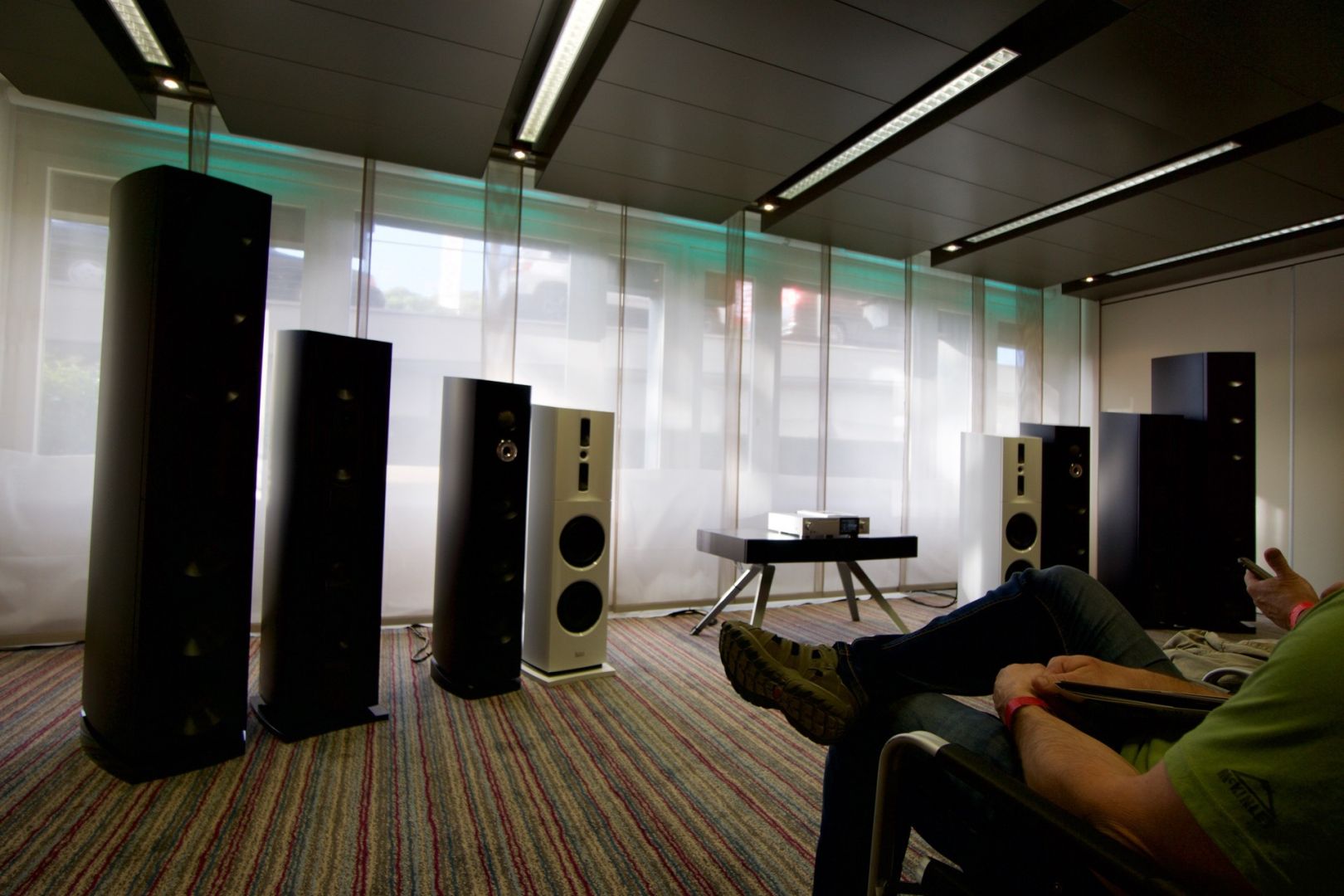 Ich erhoffte mir noch ein Highlight zum Schluss, doch leider war diese Vorführung eine ziemliche Enttäuschung. Für den hier getriebenen Aufwand - insbesondere die mannshohen Lautsprecher - klang das doch sehr fad.