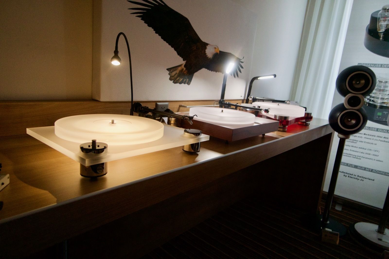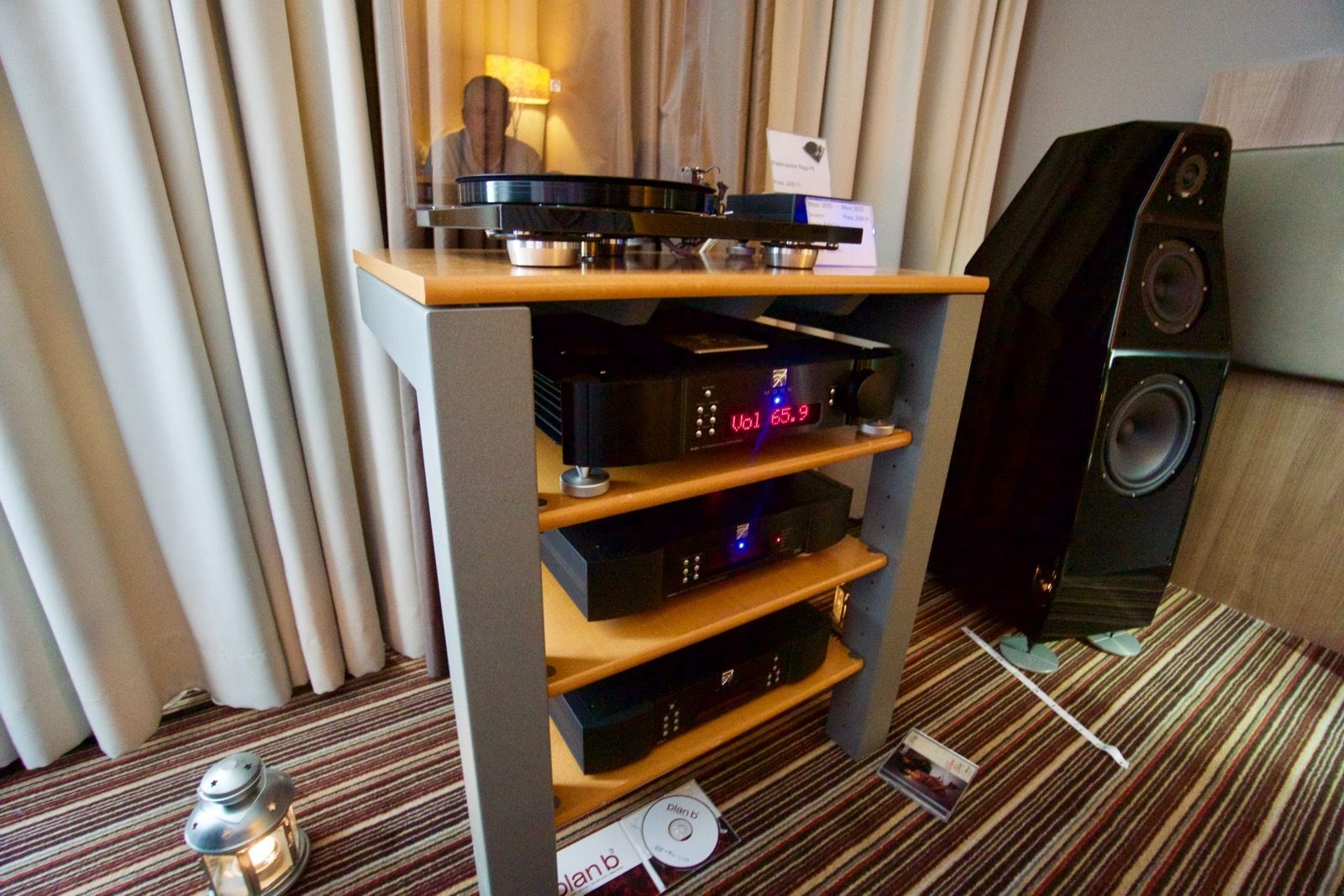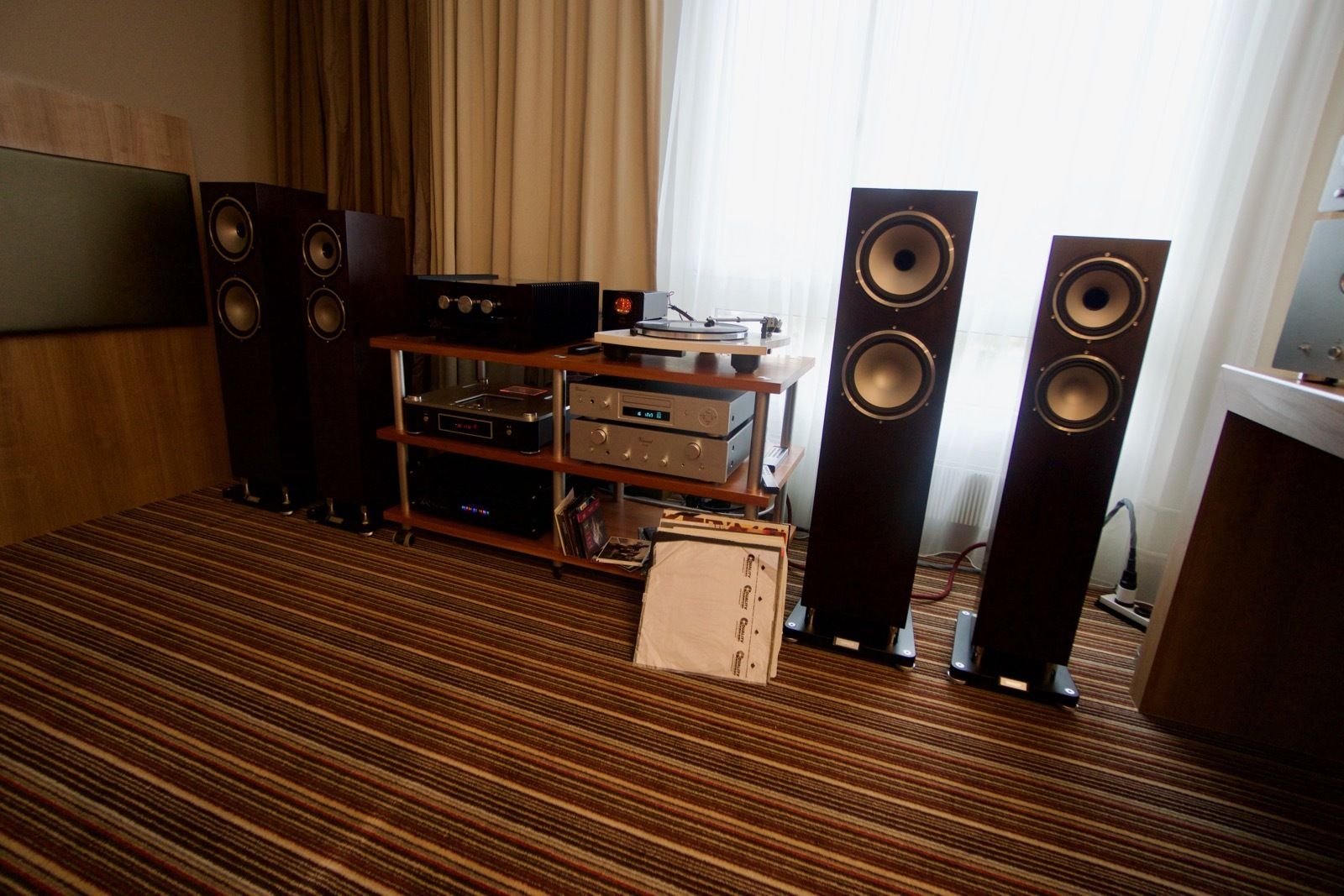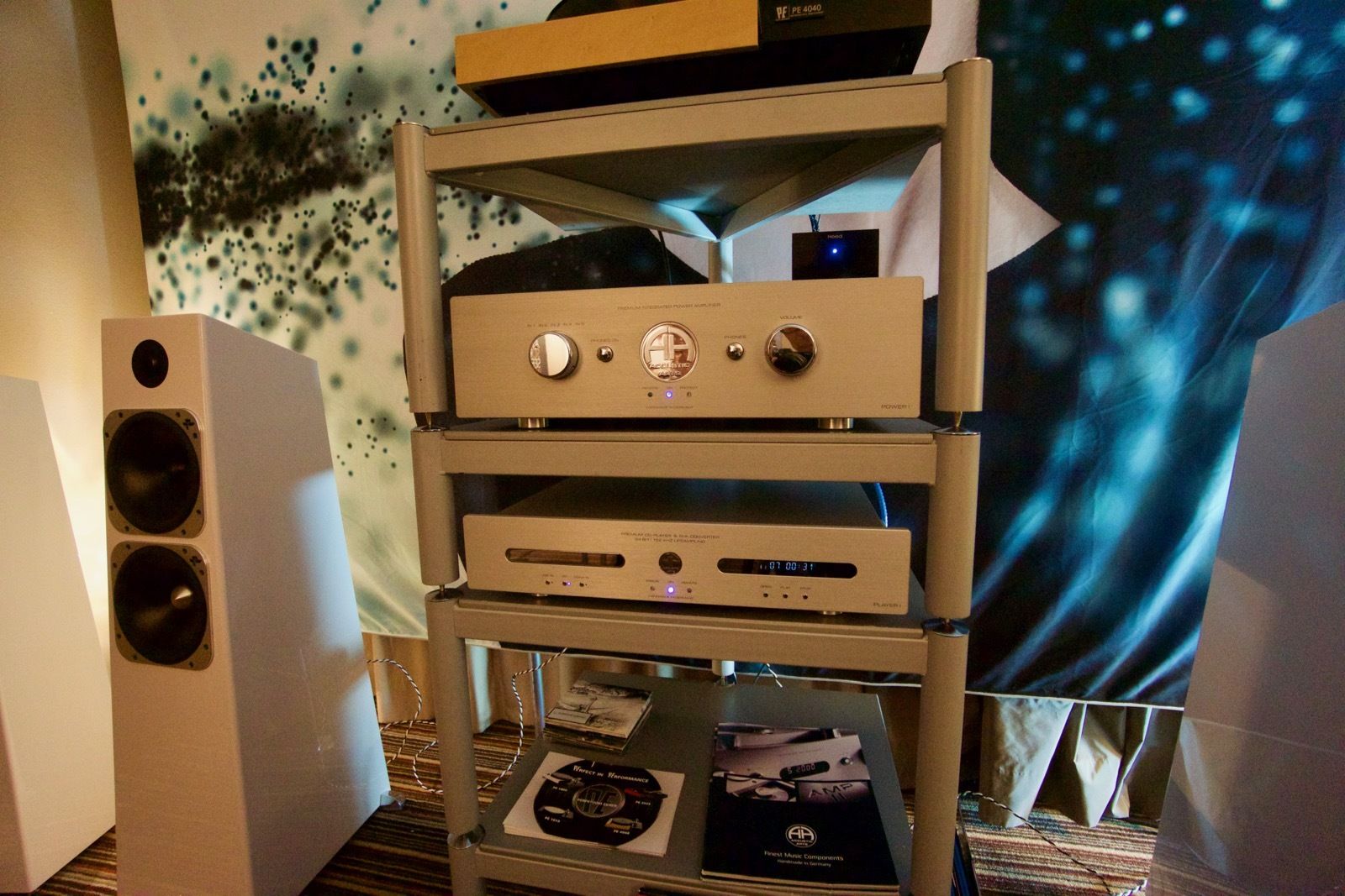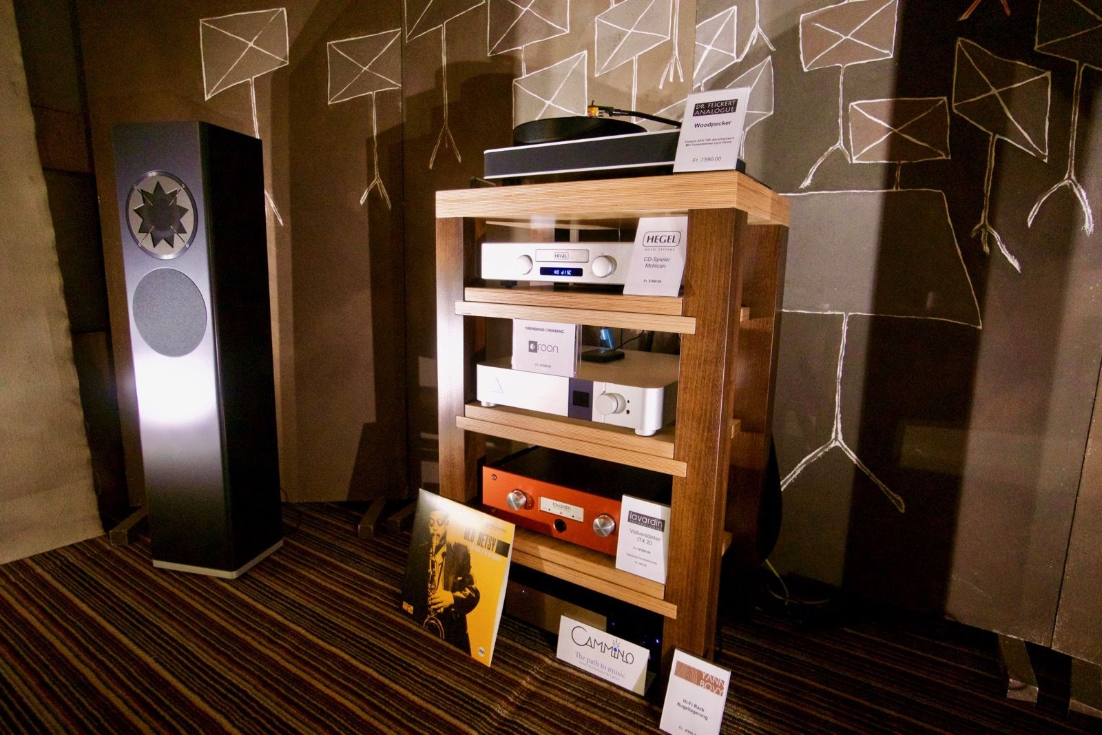 Zum Zeitpunkt meines Besuchs spielte Pink Floyd ab Vinyl. Als Plattenspieler kam ein Dr. Feickert zum Einsatz: Die noch recht junge Marke hat sich in den letzten Jahren einen guten Namen in der High End Branche erarbeitet. Der mir bis dato unbekannte Verstärker von Lavardin spielte an den Manger P1. Ein abschliessendes Urteil konnte ich hierbei nicht fällen, wobei die Manger Lautsprecher in der Regel überzeugend sind.