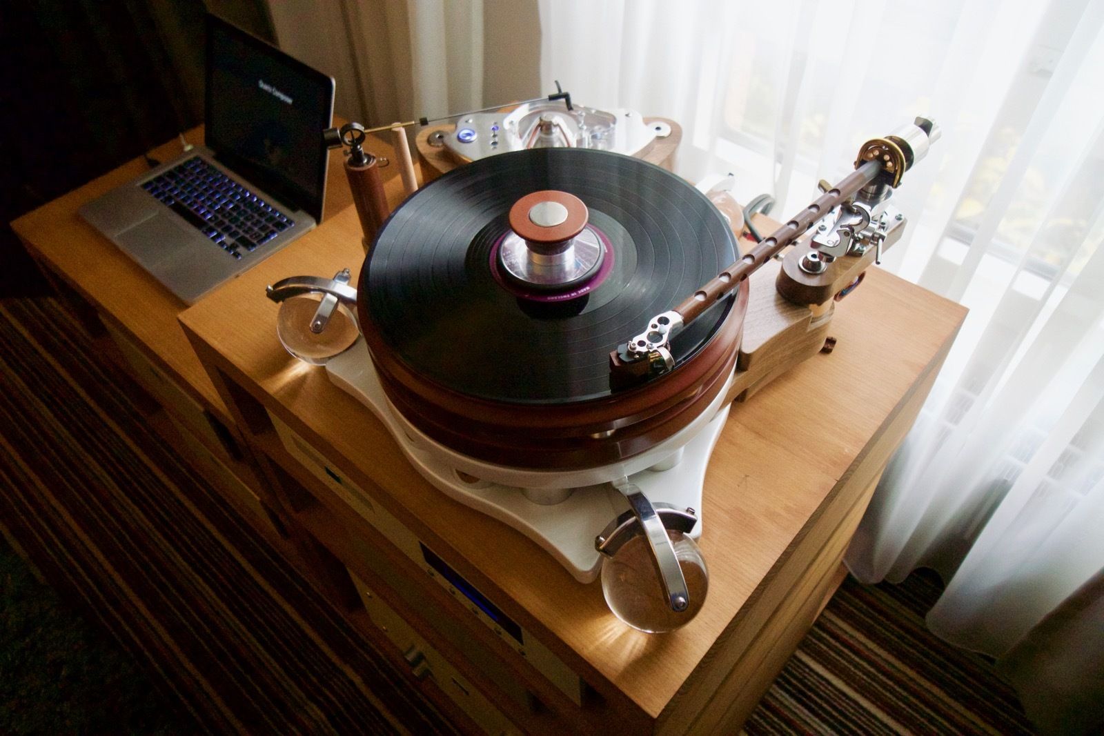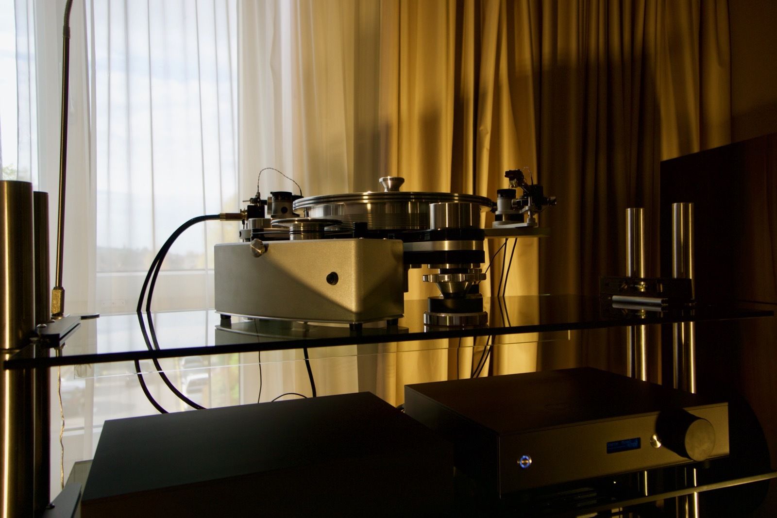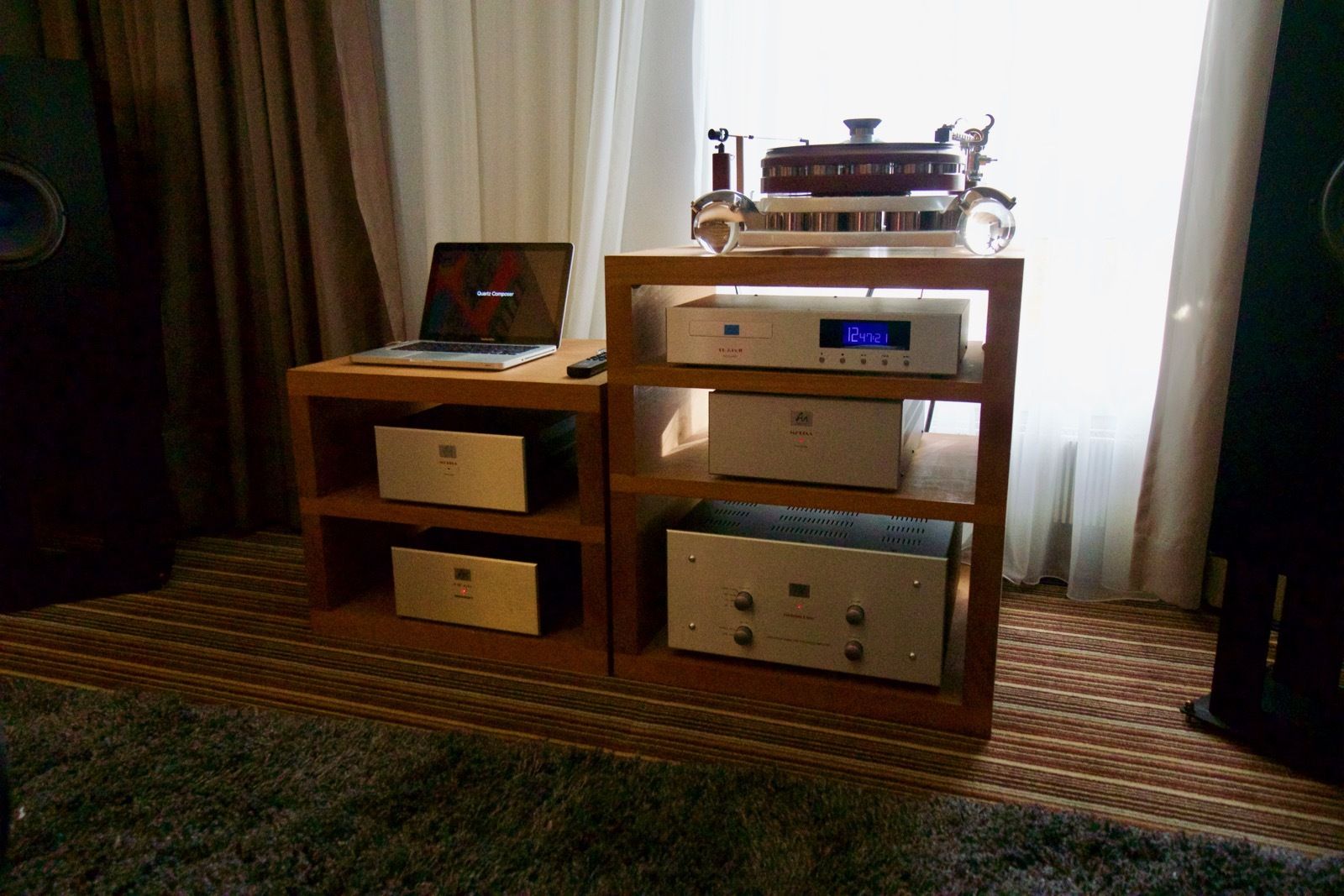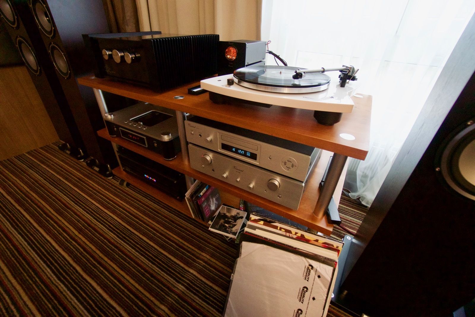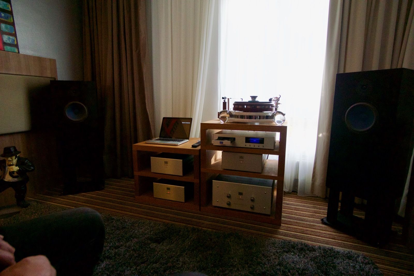 Zum Zeitpunkt meines Besuchs spielte Pink Floyd ab Vinyl. Als Plattenspieler kam ein Dr. Feickert zum Einsatz: Die noch recht junge Marke hat sich in den letzten Jahren einen guten Namen in der High End Branche erarbeitet. Der mir bis dato unbekannte Verstärker von Lavardin spielte an den Manger P1. Ein abschliessendes Urteil konnte ich hierbei nicht fällen, wobei die Manger Lautsprecher in der Regel überzeugend sind.